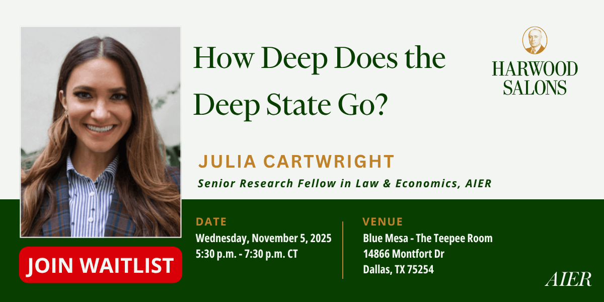 Join us in Dallas for an event with Julia Cartwright, Senior Research Fellow in Law & Economics at AIER.
