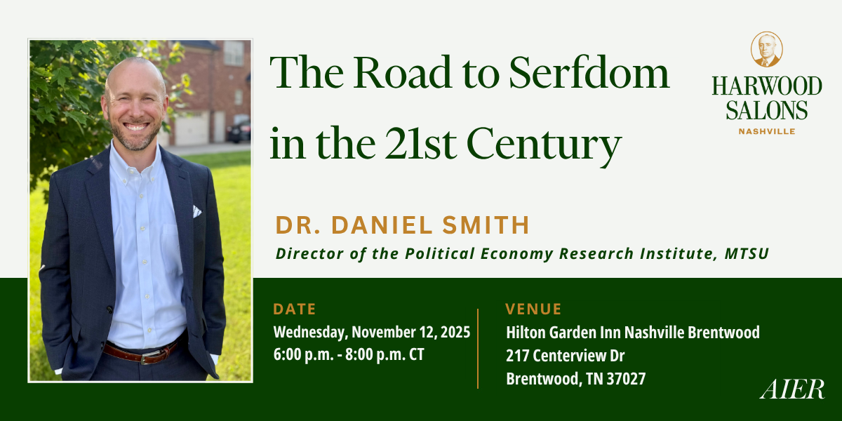 Harwood Salons – Nashville is made possible through the generosity of supporters like you. We encourage you to become a member or make a donation to support the American Institute for Economic Research and ensure the continuation of these important events. All donations are tax-deductible and directly contribute to sustaining Harwood Salons – Nashville.
